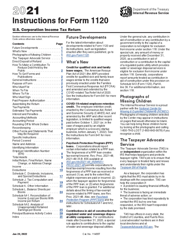 Photographs of Missing Children . ... 1 [Link]/Form1120. property received after December 31,