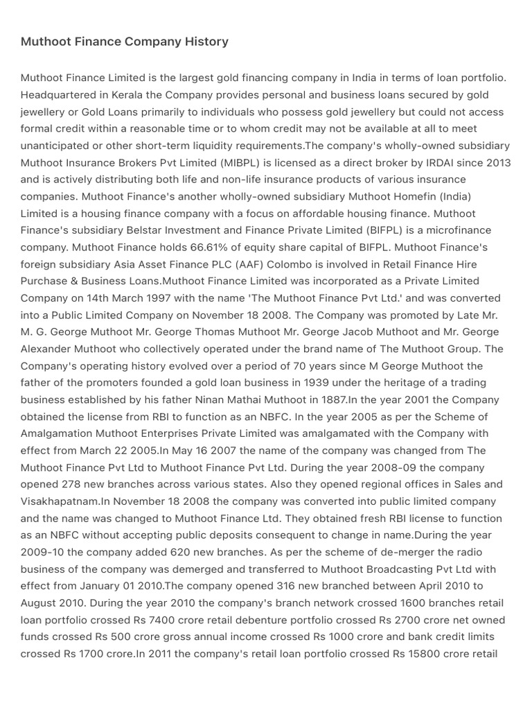 Muthoot Finance Company History