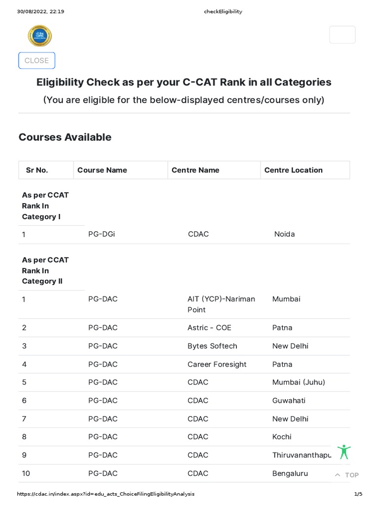 https://cdac.in/index.aspx?id=edu_acts_ChoiceFilingEligibilityAnalysis 1/5