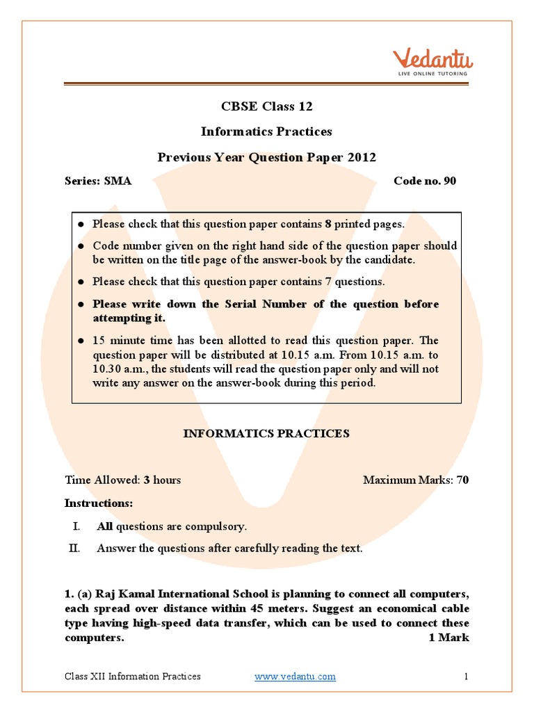 Previous Year Question Paper 2012