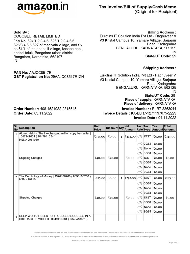 Order Date: 03.11.2022 Invoice Details : KA-BLR7-1271137075-2223