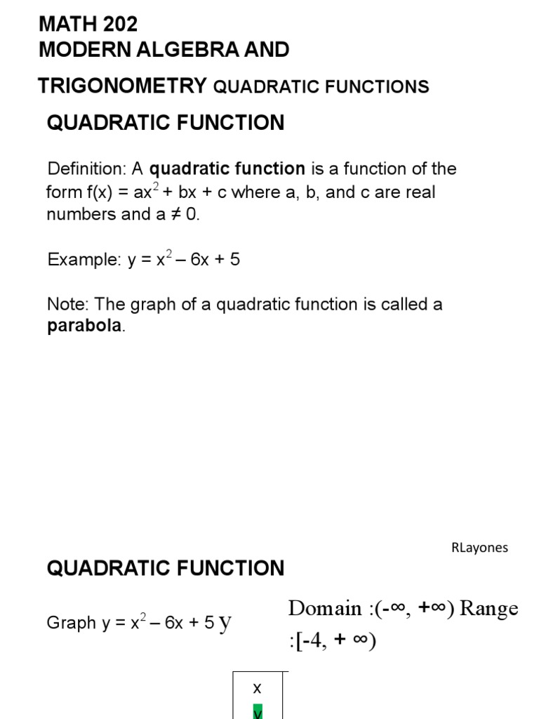Note: The graph of a quadratic function is called a