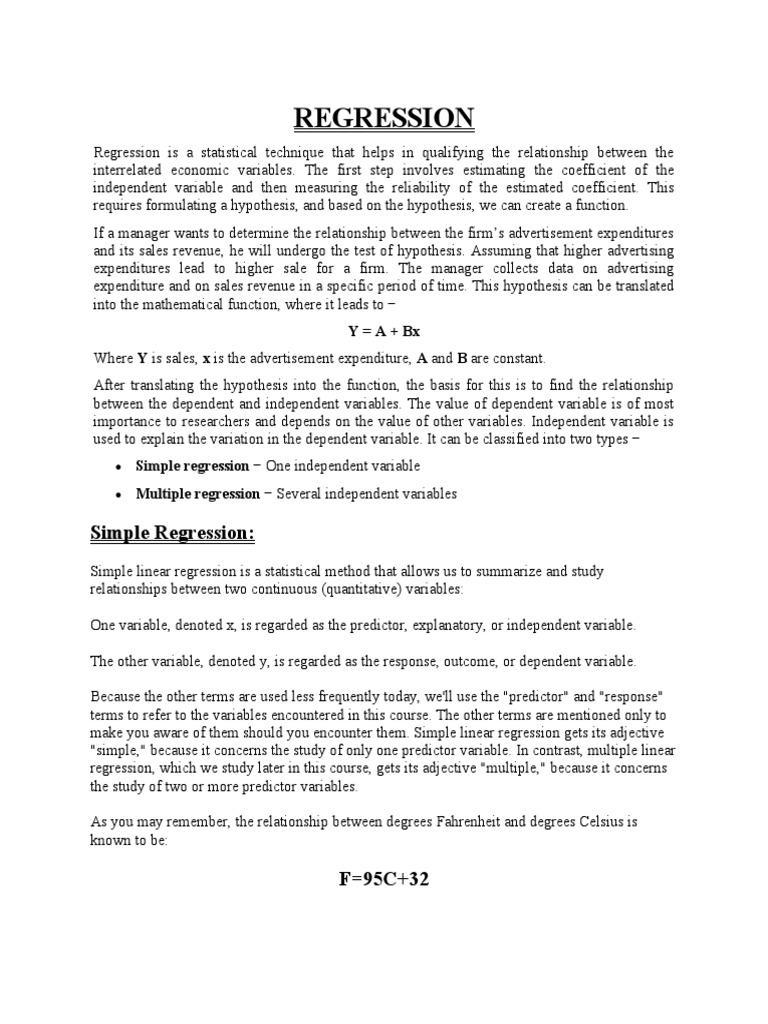 Regression is a statistical technique that helps in qualifying the relationship between the