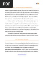 You recently watched a video about the use of video games in classrooms. Your teacher has