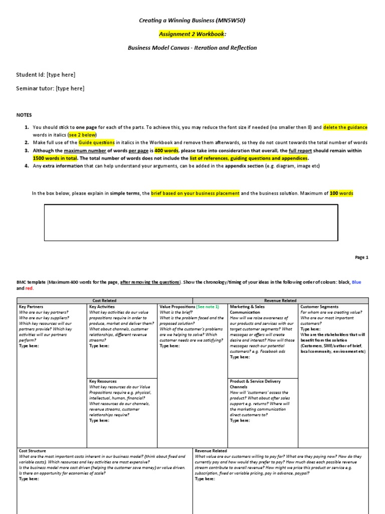 BMC template (Maximum 400 words for the page, after removing the questions). Show the chronology/timing of your ideas in the following order of colours: black, Blue