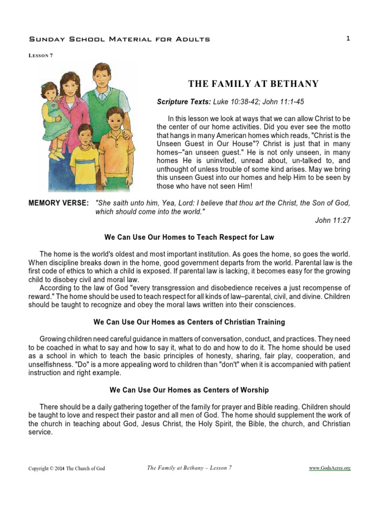 Copyright © 2014 The Church of God The Family at Bethany – Lesson 7 www.GodsAcres.org