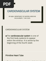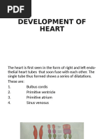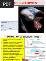 • The primitive heart has a cephalic arterial end continuous with the aortic sac and a caudal venous end