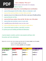 This document defines two words: clerk, meaning a person who keeps records in an office, bank, or law court, and ceaseless, meaning going on forever without stopping. It provides the definitions, part of speech (noun for clerk, adjective for ceaseless), and notes they are part of a word family.
