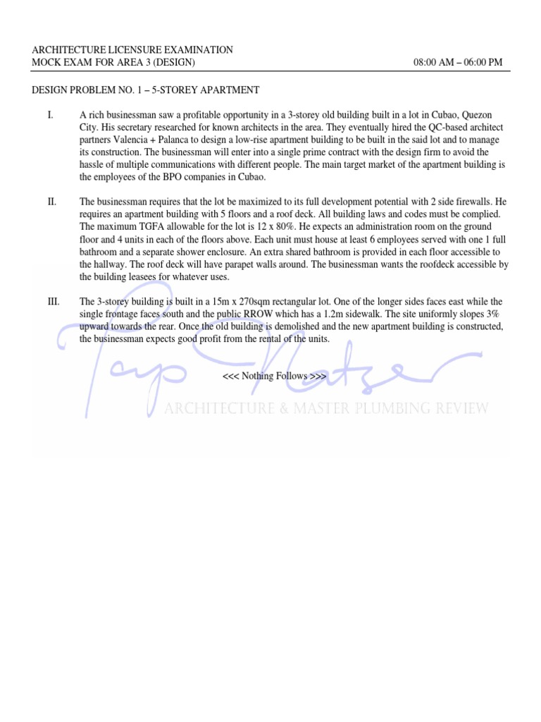 MOCK EXAM FOR AREA 3 (DESIGN) 08:00 AM – 06:00 PM