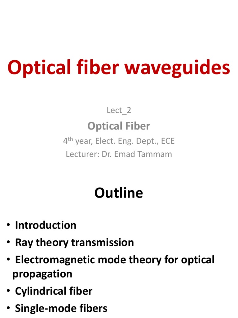 • The transmission of light via a dielectric waveguide