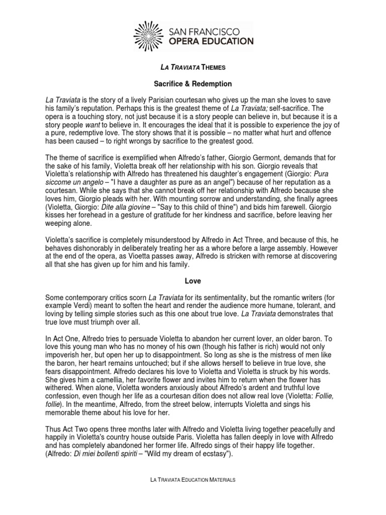his family’s reputation. Perhaps this is the greatest theme of La Traviata; self-sacrifice. The