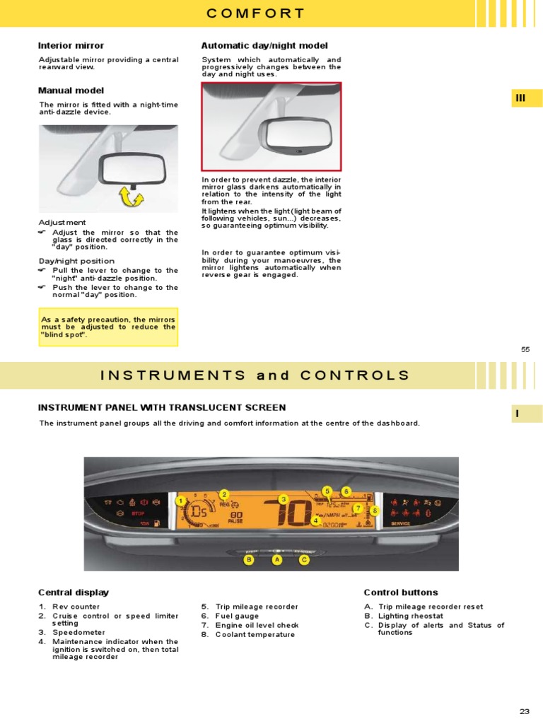 It is recommended that the driver menus of the function chosen or of alerts signalled previously),