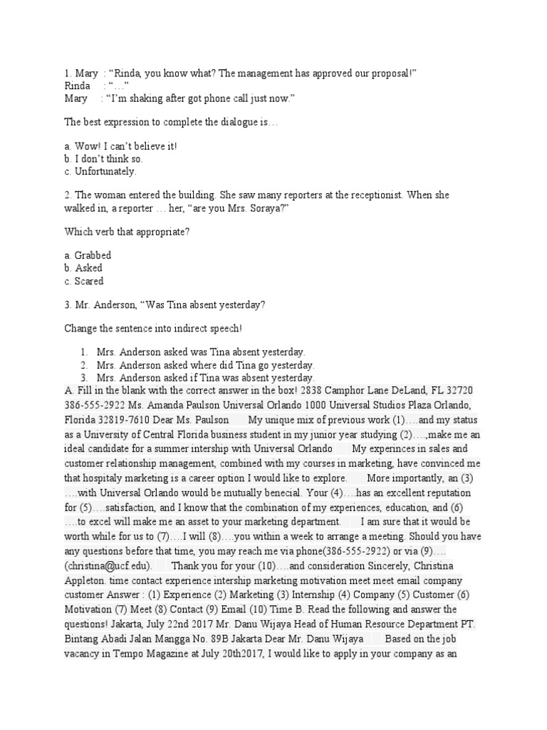 questions! Jakarta, July 22nd 2017 Mr. Danu Wijaya Head of Human Resource Department PT.