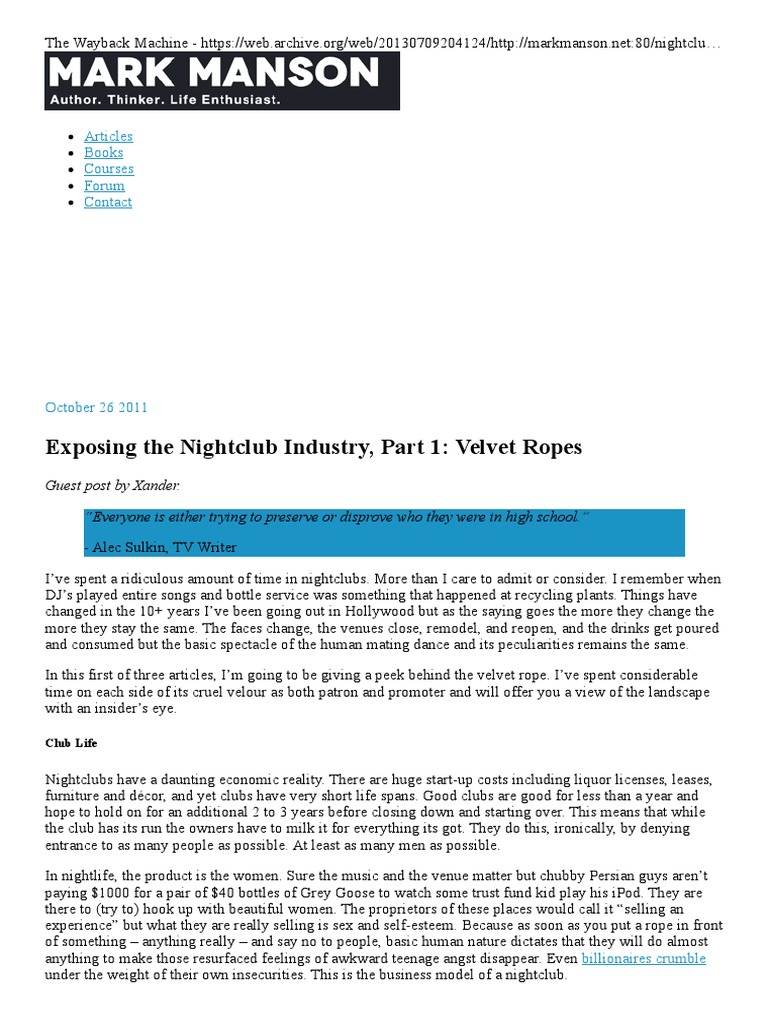 Exposing the Nightclub Industry, Part 1: Velvet Ropes
