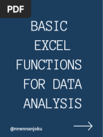 This document lists common Excel functions categorized by their function type. It includes statistical functions like AVERAGE and COUNT, lookup functions like VLOOKUP and HLOOKUP, filtering functions like FILTER and UNIQUE, and mathematical functions like SUM, MIN, and MAX.