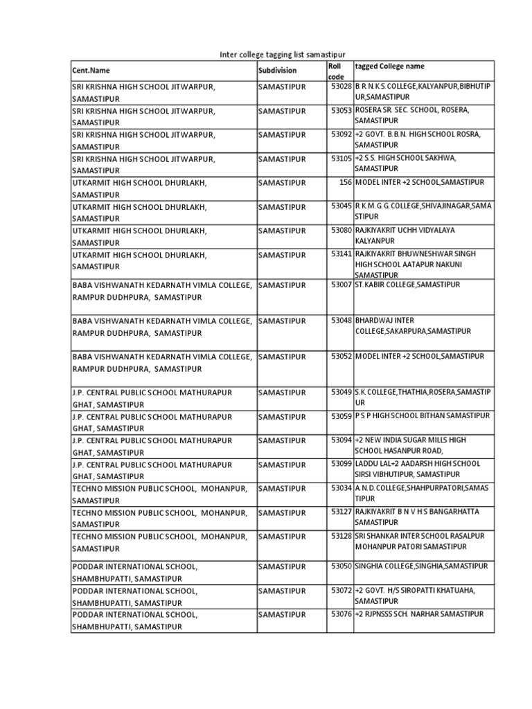 R.P.P.M. COLLEGE ROSERA, SAMASTIPUR ROSERA 53092 +2 GOVT. B.B.N. HIGH SCHOOL ROSRA,