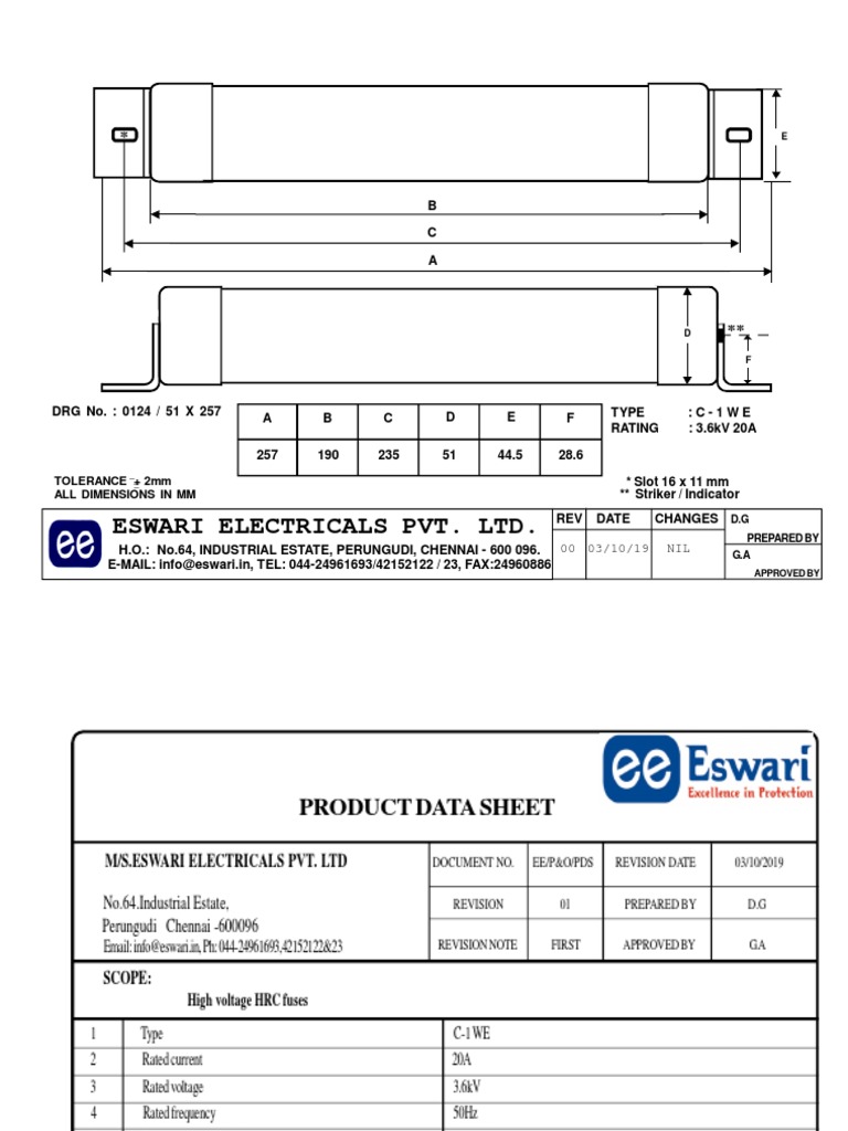 M/S.ESWARI ELECTRICALS PVT. LTD DOCUMENT NO. EE/P&O/PDS REVISION DATE 03/10/2019