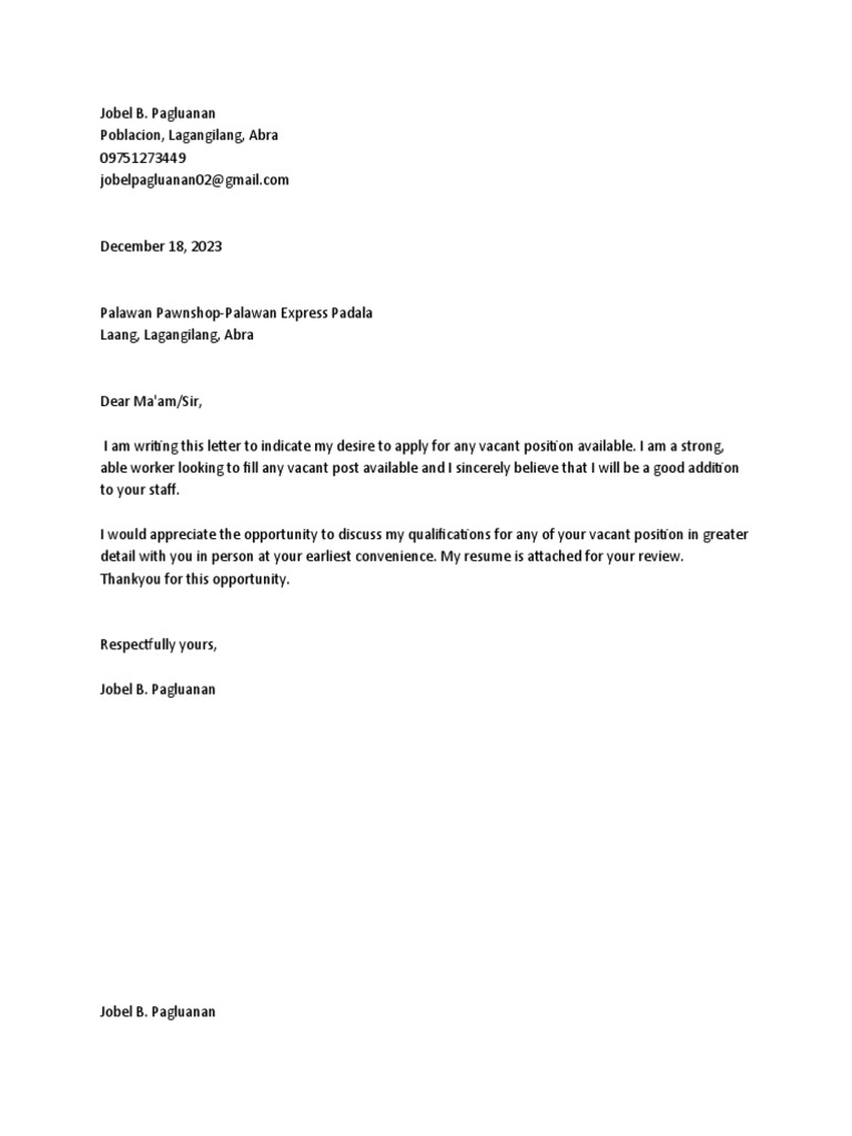 I am writing this letter to indicate my desire to apply for any vacant position available. I am a strong,