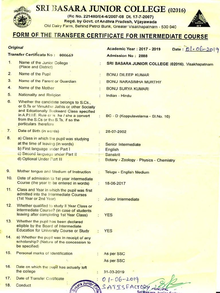 SRI BASARA JUNIOR COLLEGE (02016). Visakhapatnam
