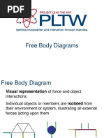 rFT = mr2 = mr 2 In this case, the quantity mr2 is called the moment of inertia and given the symbol I. So this becomes = I. If we have more then one source of torque, we get = I which is the rotational equivalent of Newtons second law. The reason we write I rather than mr 2 is because I depends on different factors and although it is mr 2 for a sphere on a string, it is not mr 2 for every object. In general, we can write the moment of inertia for a collection of particles as I = mr 2 This can be used to calculate the moment of inertia of a baton, for instance, but not for many other extended objects. In that case, calculus is needed. Page 204 lists the moment of inertia for a few shapes. In any problem you have to do, you will be given the equation for the moment of inertia. Problem: Suppose a baton is 1.0 m long with each end weighing 0.3 kg. Neglect the mass of the bar. What is the moment of inertia for a baton (a) spinning around its center? (b) spinning around one end of the baton? Note that the moment of inertia depends on where the axis of rotation is. Another quantity is the radius of gyration. It is given the symbol k, and is defined as the location on the object that would have the same moment of inertia as the original object if all the mass where located at k. The relationship between the moment of inertia and the radius of gyration is always given by I = Mk 2. Lets now solve some problems using Newtons second law in this form for rotational motion. We use it the same way as we used Newtons second law for purely translational motion. We must draw a free body diagram, determine the torques and the accelerations, and solve for the unknown quantities. Up until now we have not been concerned about where a force acted on an object. But because torques produce rotation around some axis that depends on the distance from where the force is applied, it is important to look at where a force is applied on an object. For the force of gravity, we assume the force is applied