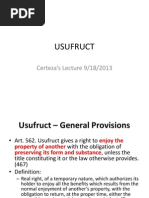 Perpendicular co-ownership > different stories belong to different persons; still co-ownership for there is still unity in the use or ornamentation of the property, particularly in the main and common walls, roof, stairs, etc. which is not common in our country Art applies only if there is no contrary provision in the titles of ownership or agreement Horizontal co-ownership > if the various units are in one plane (as when 1-story units all set on the ground) Combination of perpendicular and horizontal = condominium (divided into different units owned by different persons) Ground floor not same as first floor RULES 1. Proportionate contribution is required for main walls, party walls, roofs, and other things used in common. 2. Each floor owner for the expenses of his floor. 3. Stairs to be maintained from story to story by the users. RA 4726 > The Condo Act The buyer of a unit in a condo acquires ownership over the unit only after he has paid in full its purchase price. The ownership is the separate interest of the owner w/c makes him automatic shareholder of condo corp All incorporators must own condo unit PD 947 designed to stem the tide of fraudulent manipulations done by unscrupulous subdivision and condo sellers and operators The act of subdivision developer of mortgaging the subdivision w/o notifying an installment buyer is violative of PD 957 (under jurisdiction of HLURB).