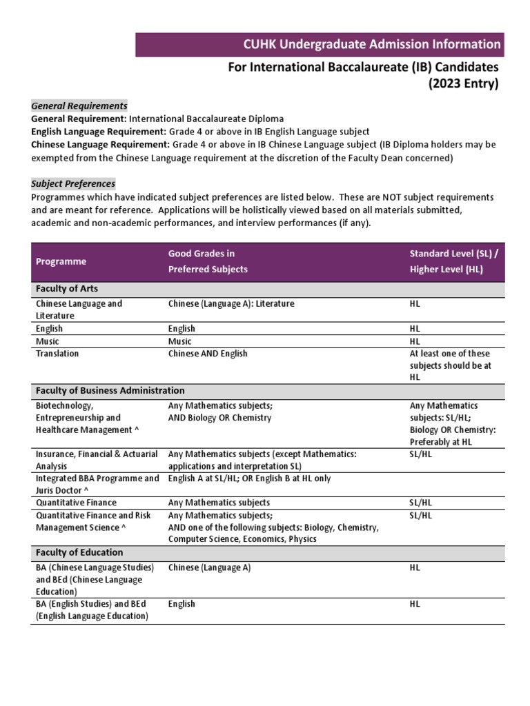 CUHK Undergraduate Admission Information