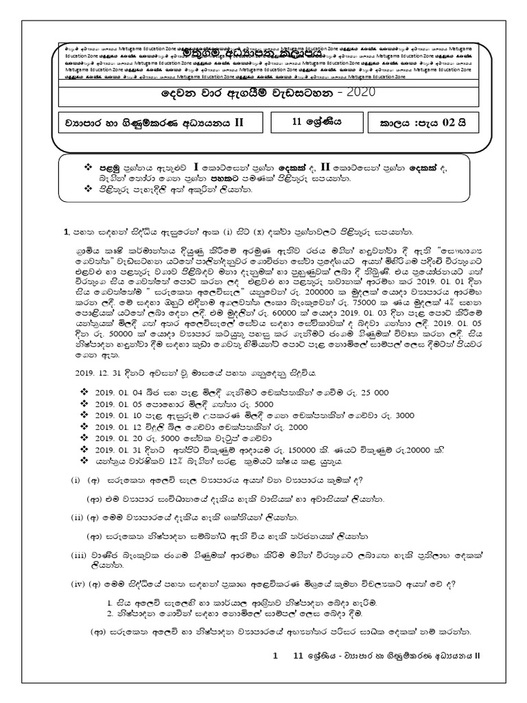 2 11 ශ්රේණිය - ව්යාපාරාහ ා ණුම්කරණහඅ ්යයයය II