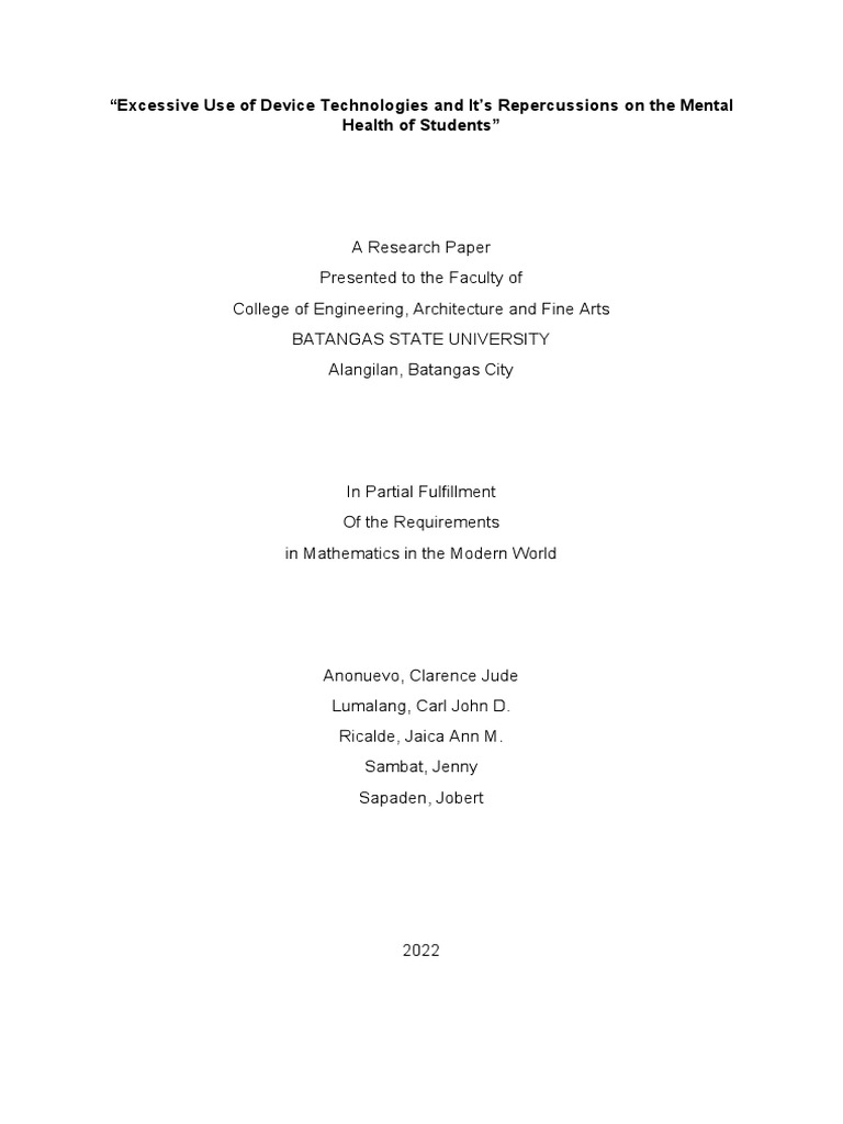 “Excessive Use of Device Technologies and It’s Repercussions on the Mental