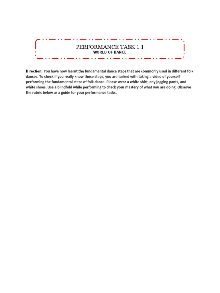 performing the fundamental steps of folk dance. Please wear a white shirt, any jogging pants, and