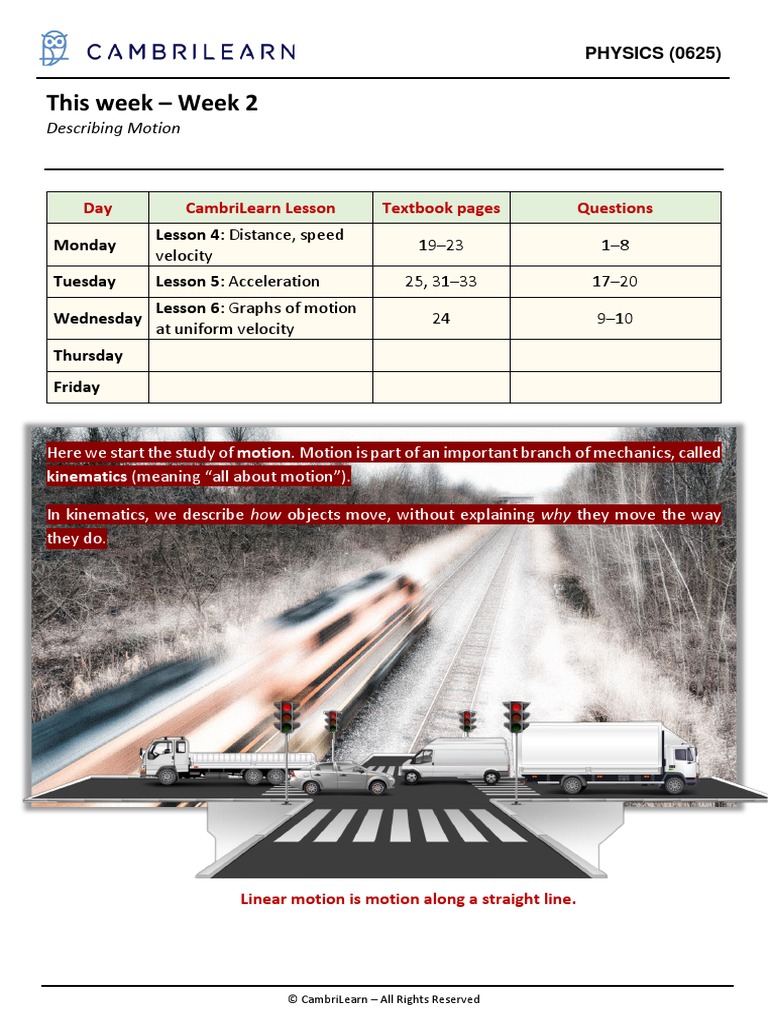 Tuesday Lesson 5: Acceleration 25, 31–33 17–20