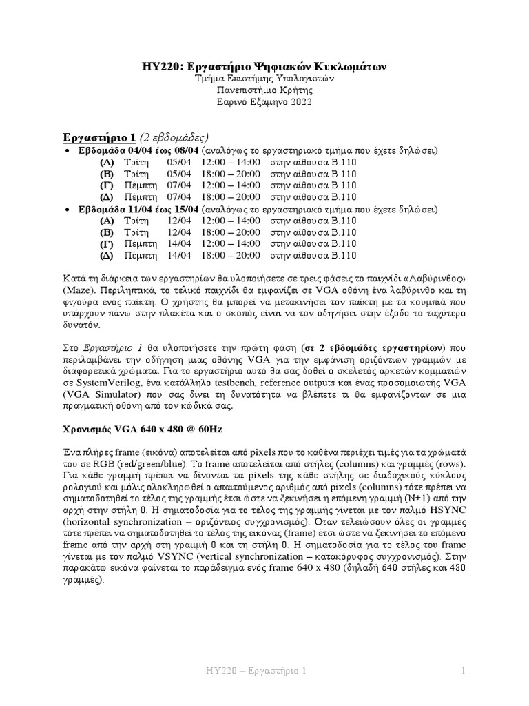Για το εργαστήριο αυτό θα πρέπει να υλοποιήσετε το μπλοκ vga_sync του οποίου ένα άδειο