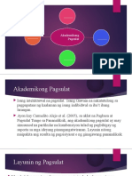 Akademikong Pagsulat- ay tumutukoy ito sa pagsulat na isinasagawa para