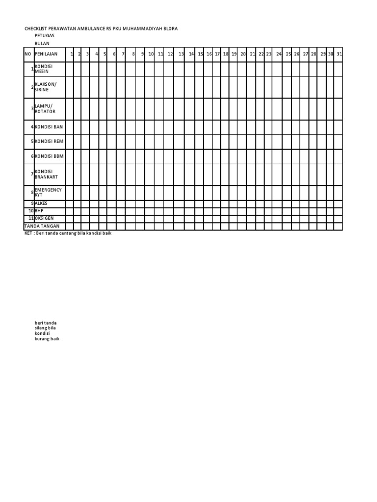 CHECKLIST PERAWATAN AMBULANCE RS PKU MUHAMMADIYAH BLORA