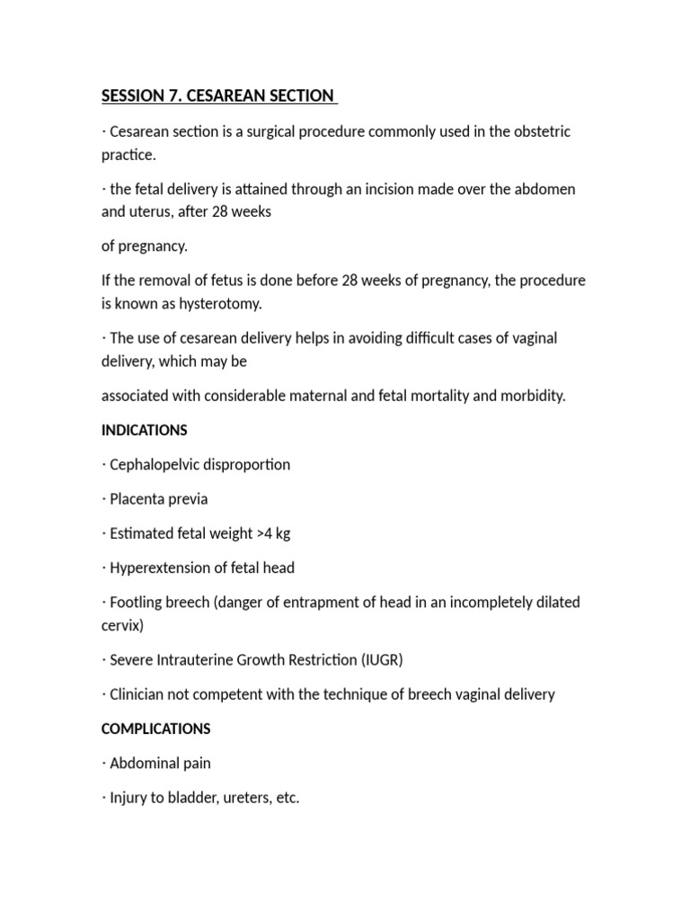 · Cesarean section is a surgical procedure commonly used in the obstetric