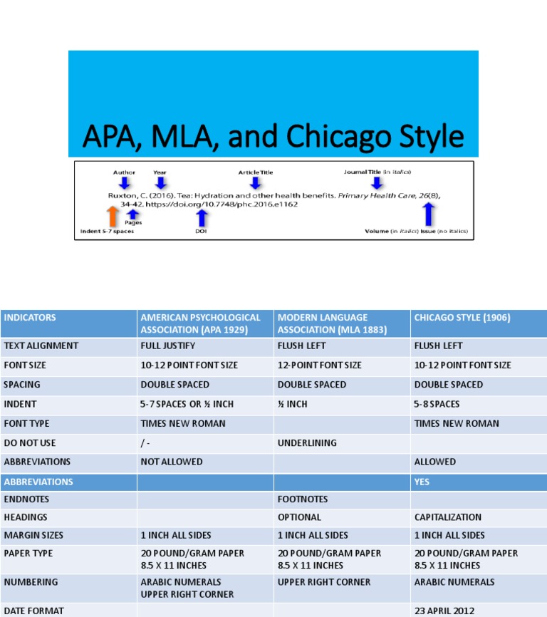APA, MLA, and Chicago Style