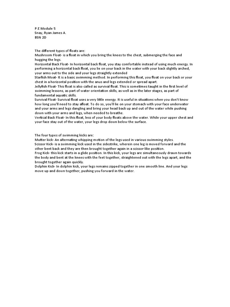 Mushroom Float- is a float in which you bring the knees to the chest, submerging the face and