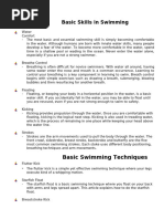swimming lessons, as part of water orientation skills, as well as in the later stages, as part of