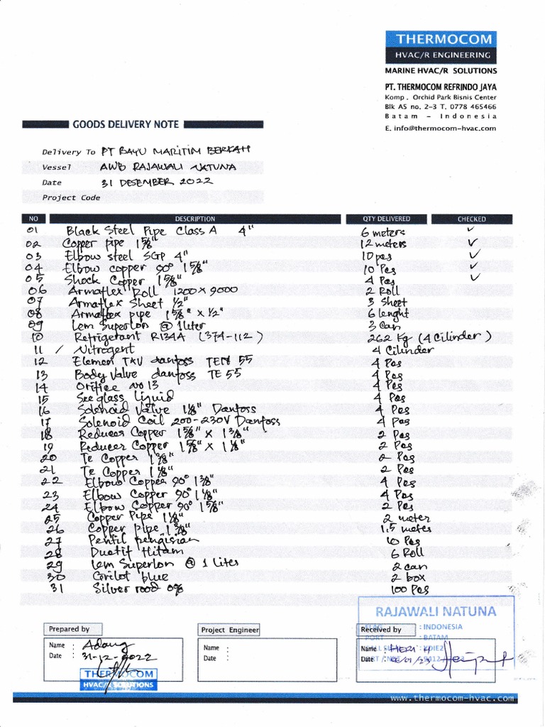 GOODS DELIVERY NOTE E. info@thermocom-hvac.com