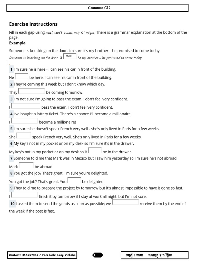 Fill in each gap using must, can’t, could, may or might. There is a grammar explanation at the bottom of the