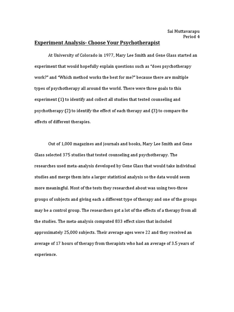 psychotherapy (2) to identify the effect of each therapy and (3) to compare the