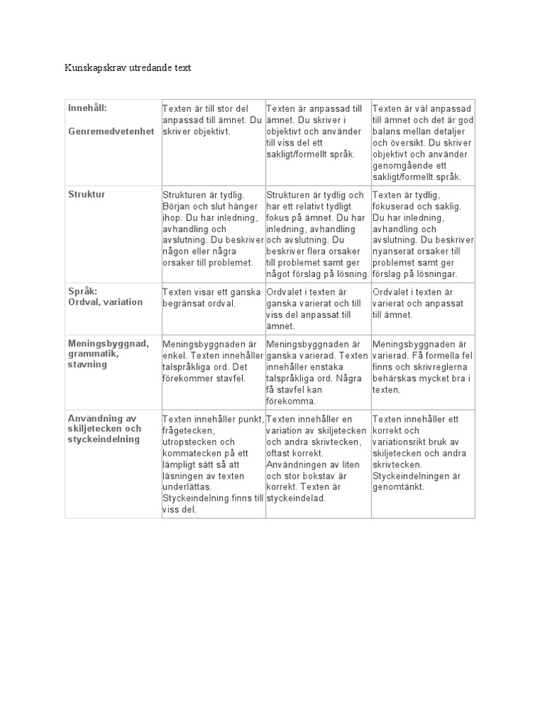 Innehåll: Texten är till stor del Texten är anpassad till Texten är väl anpassad
