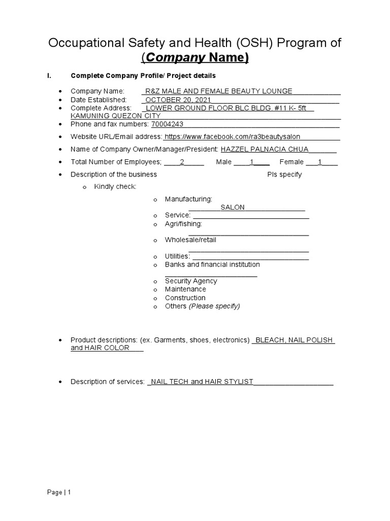 Company Name: _R&Z MALE AND FEMALE BEAUTY LOUNGE____________