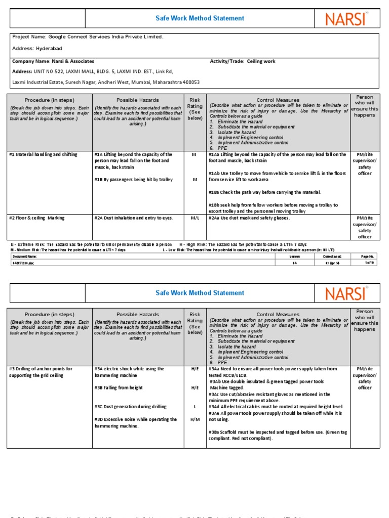 #5 Installation of grid ceiling channel # 5A Falling of men and material when H #5Aa Scaffold must be inspected and tagged before use. (Green