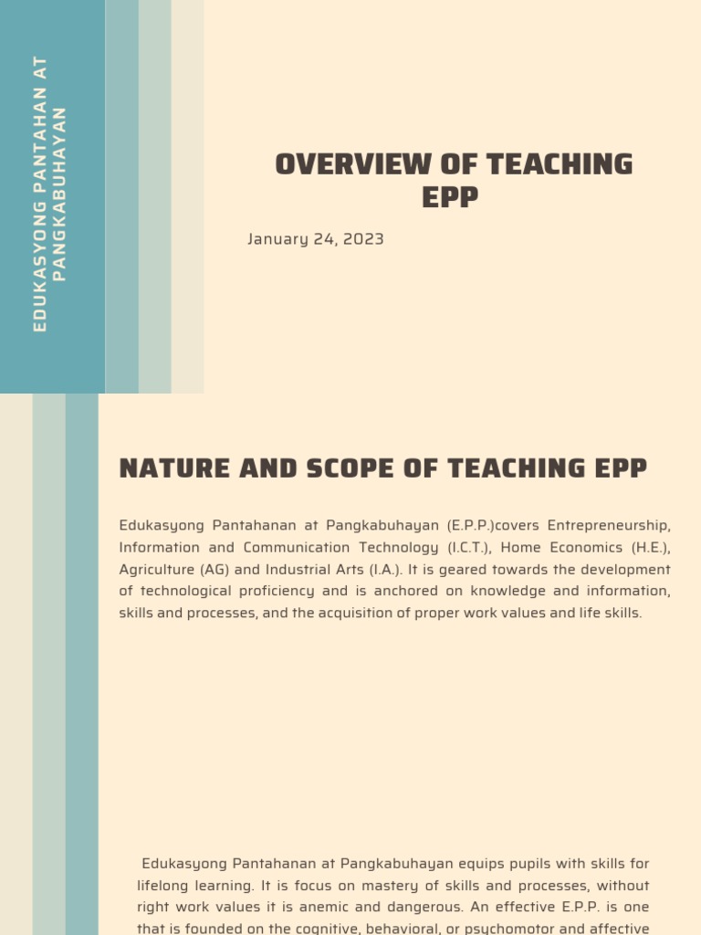 E.P.P. by its nature is a skill subject, hence we teachers must engage
