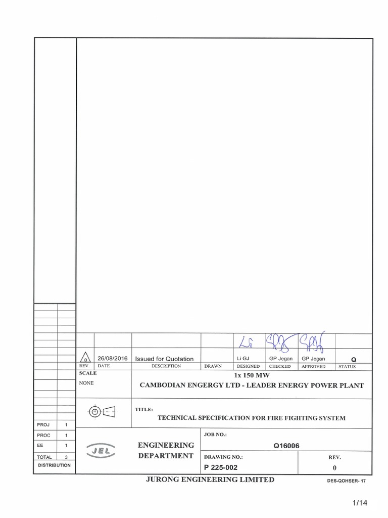 TECHNICAL SPECIFICATION FOR FIRE FIGHTING SYSTEM Q 16006 P225-002 0