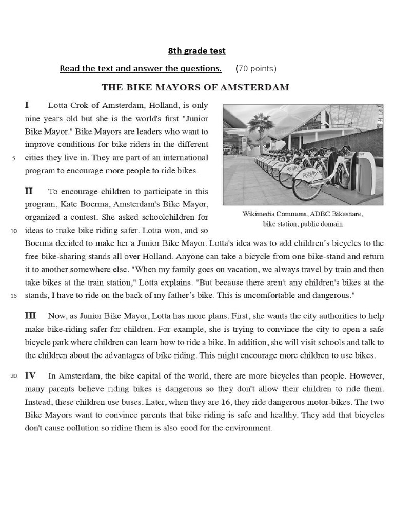 3. According to paragraph II, Lotta became Junior Bike Mayor after