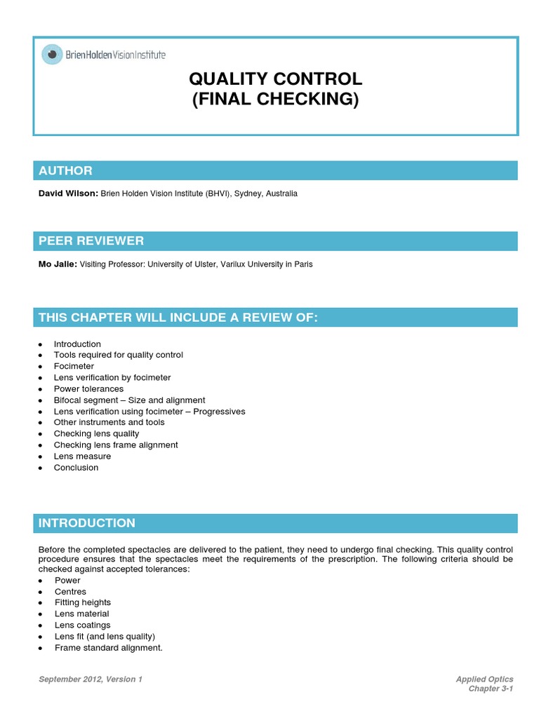 Accurate refraction and dispensing demands equally accurate quality control of the finished spectacles.