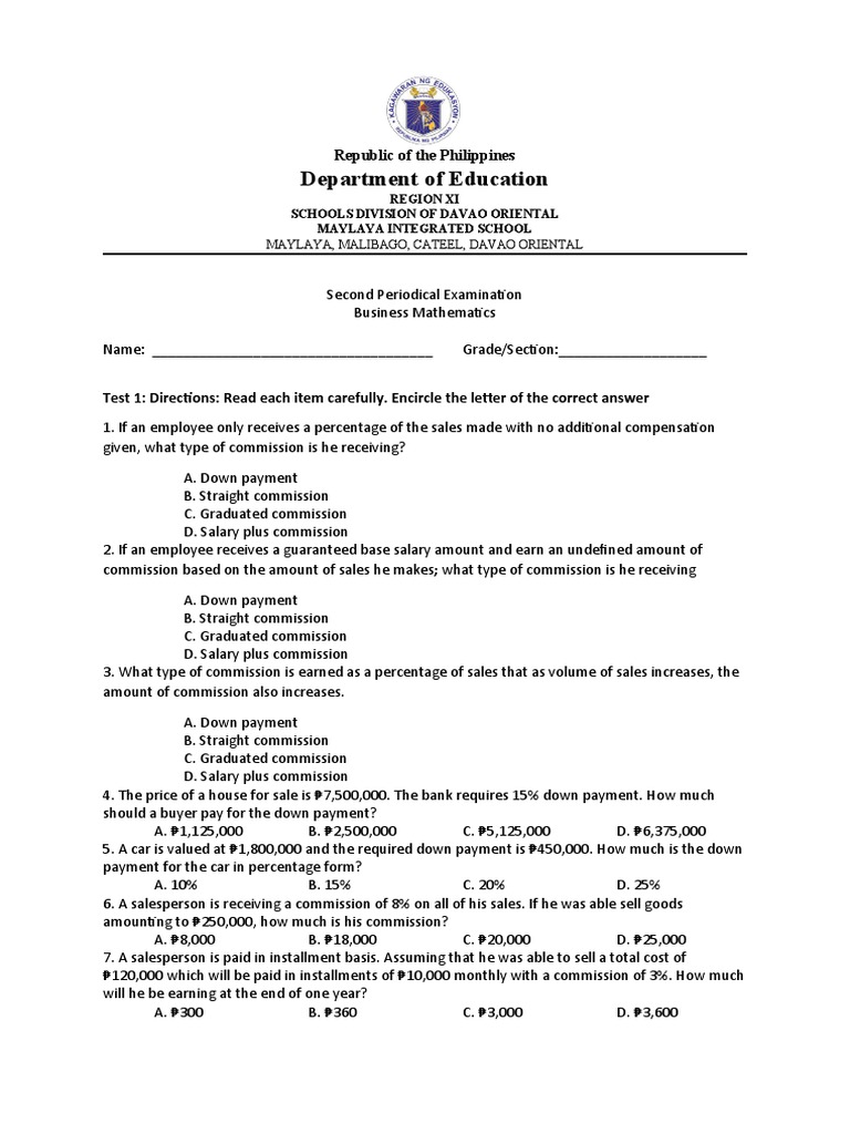 given a 2% commission on her sales. For the current month, her sales were ₱1 035 000.00. What is