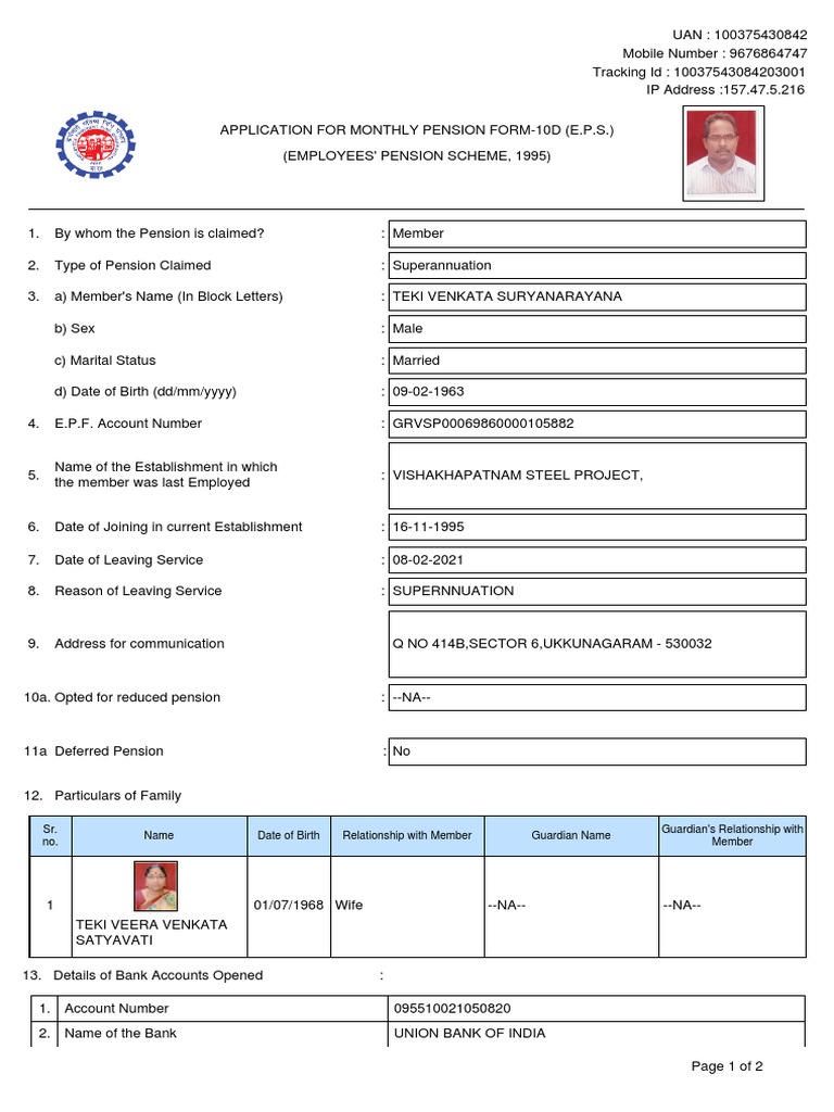 APPLICATION FOR MONTHLY PENSION FORM-10D (E.P.S.)