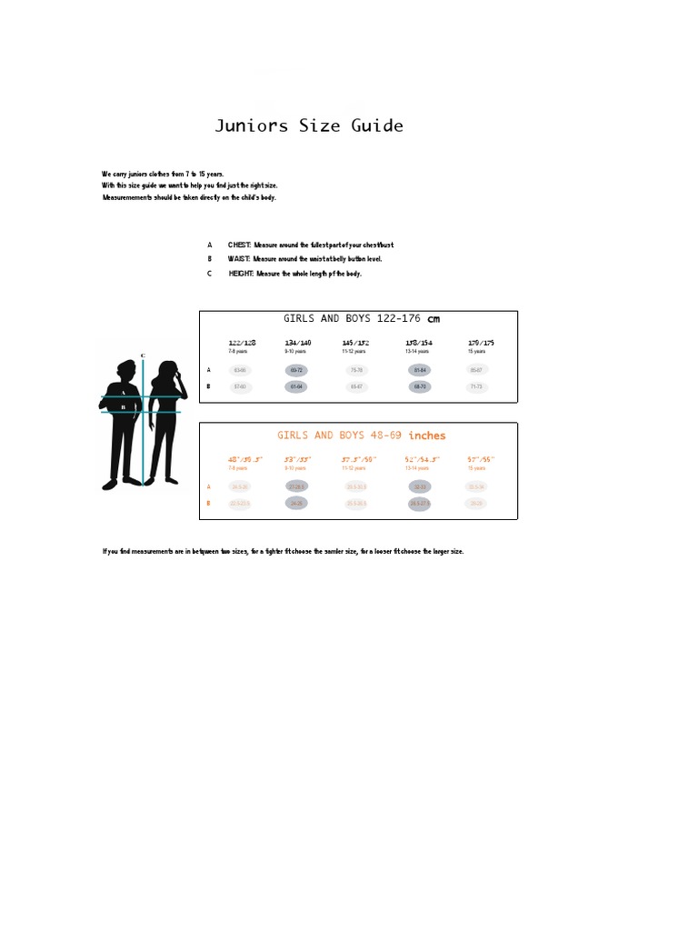 If you find measurements are in betqween two sizes, for a tighter fit choose the samler size, for a looser fit choose the larger size.